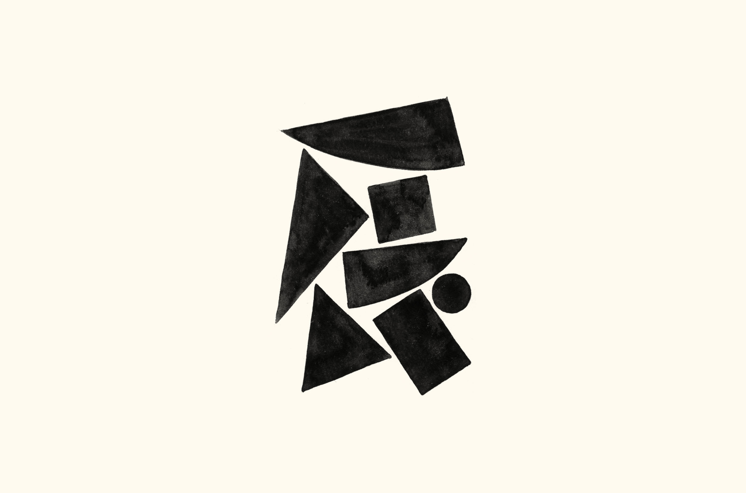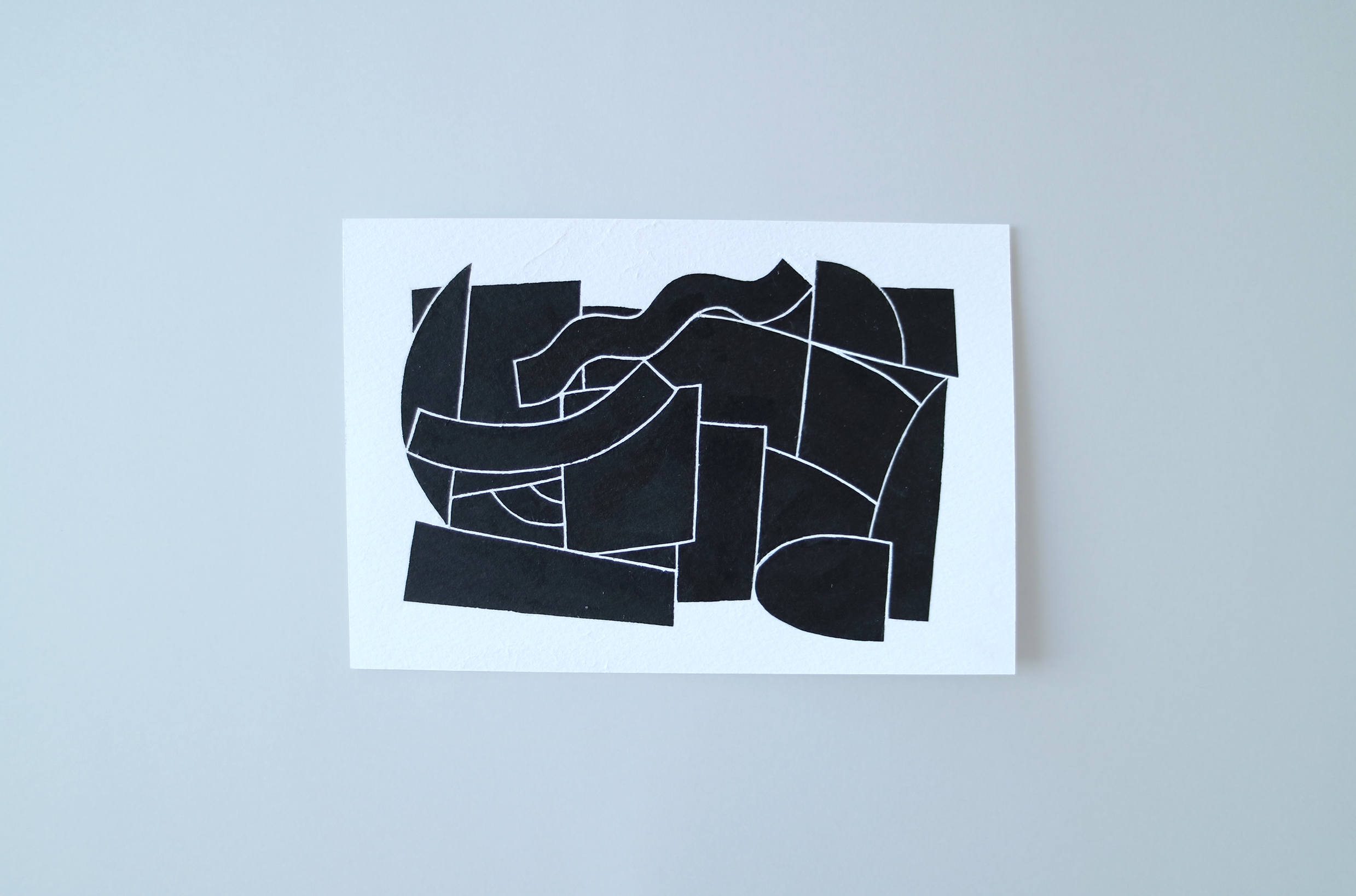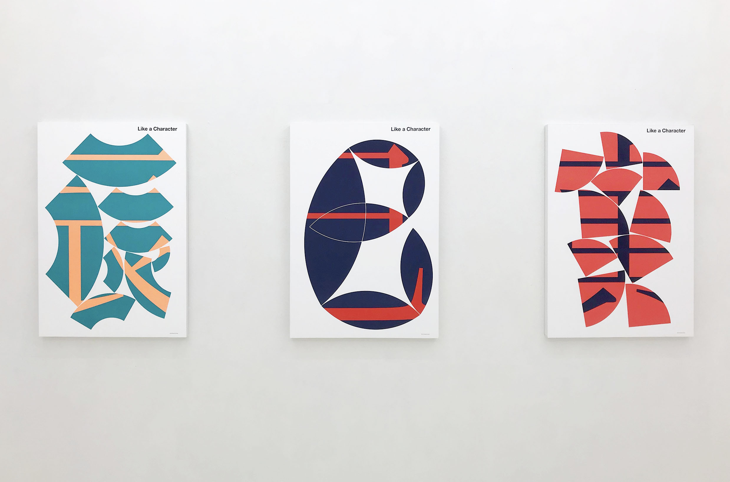 文字の形を探るための習作。意味や目的、機能性や使われる道具などによって、その形が左右されることの多い文字のデザイン。この制作ではそうした制限から一旦距離を置き、形とその構成だけのよりプリミティブな目線に立って制作することを試みました。