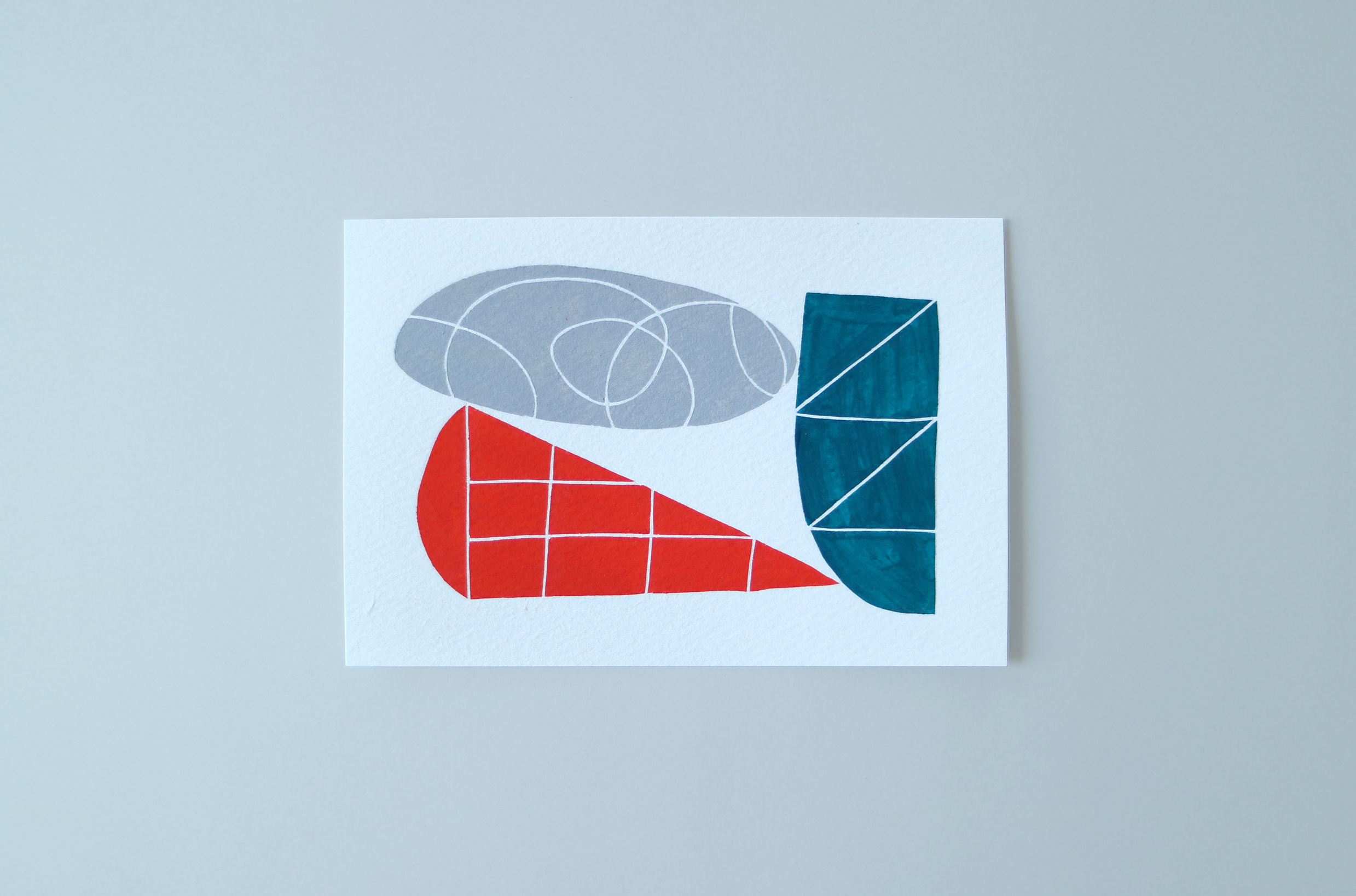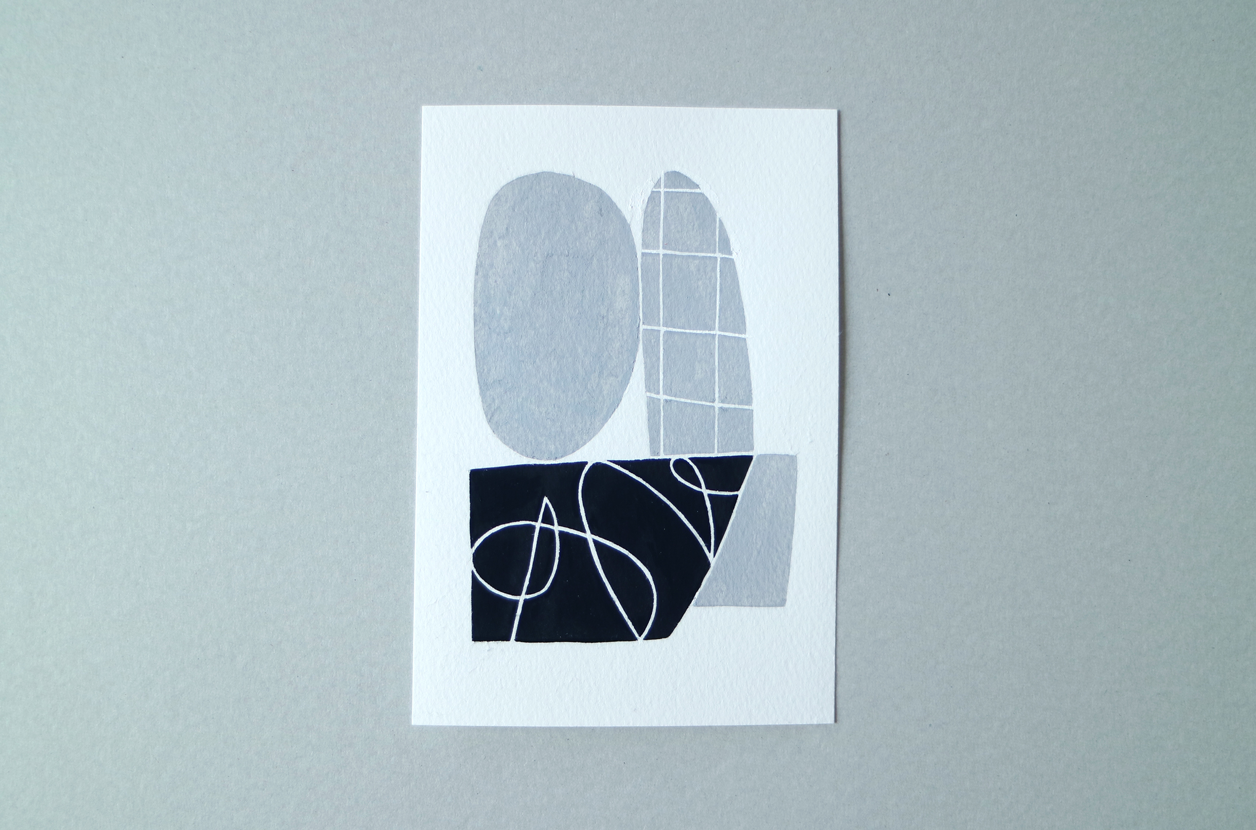 理由のない(わからない)形やそれによって構成されたものなど、形が意味を持つ前の段階で、それ自体として持っている美しさや魅力、不思議さや面白みを模索。文字のデザインに結びつくアイデアを求めて制作を試みました。