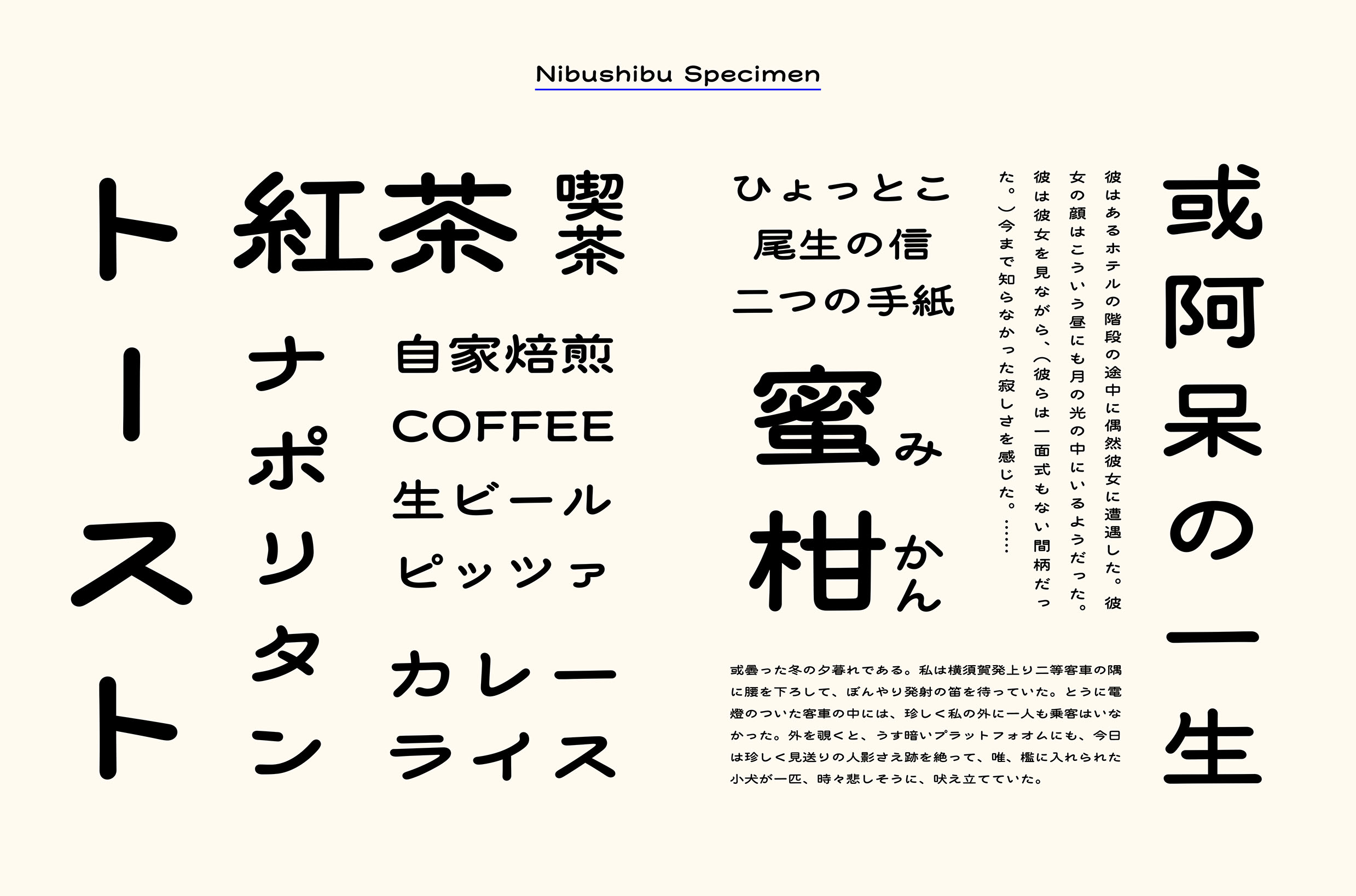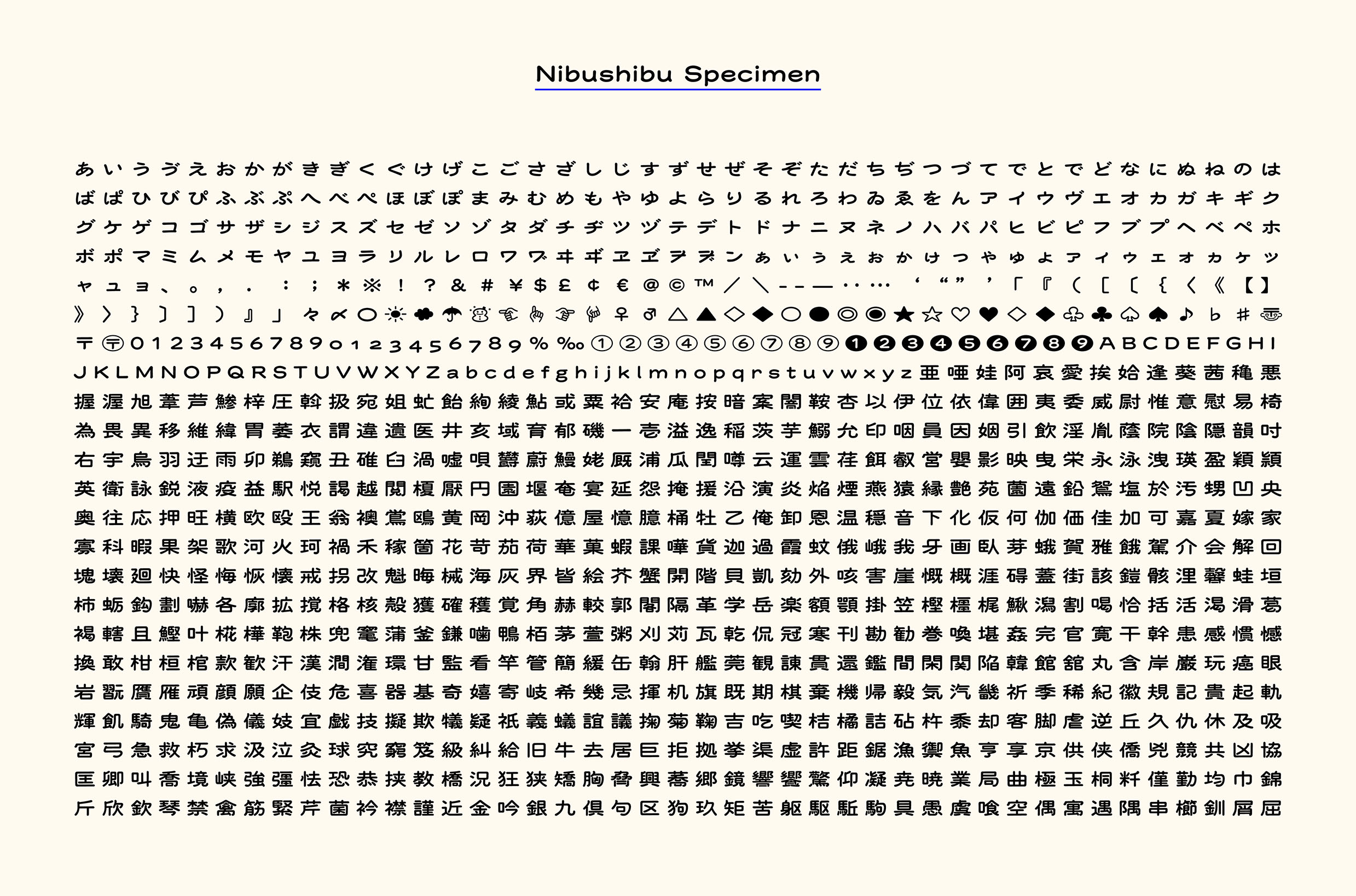 ニブシブ(2019 ver.)に(株)モリサワ監修のもと改良を重ね、Morisawa Fontsより2024年にリリース。